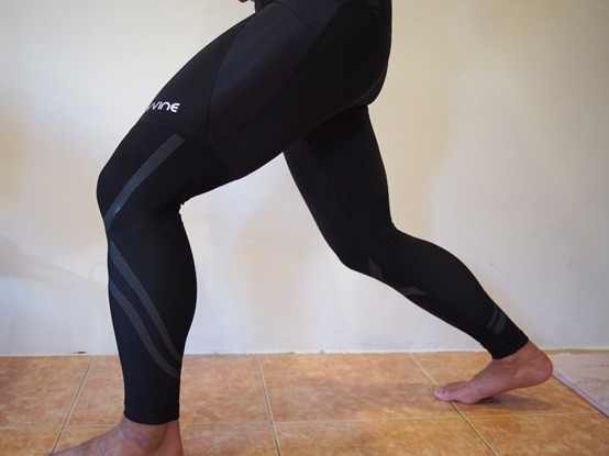 當筆者剛穿上這款壓縮長褲時,最令人印象深刻之處乃在於膝蓋與小腿的感覺。在小腿的部分,與筆者自己所穿過的數條壓縮長褲做比較,BodyVine這款可說是對阿基里斯腱部位加壓最有感的。就膝蓋而言,除了加壓感明顯之外,一般在穿壓縮長褲的最大困擾之一就是如何將褲子調整到定位,往往得歷經一番東拉西扯地。但BodyVine髕骨下緣的線條貼紮設計就宛若一到卡榫,只要在穿的時候對準,就能將膝蓋定好位,這點對我來說是蠻方便的。