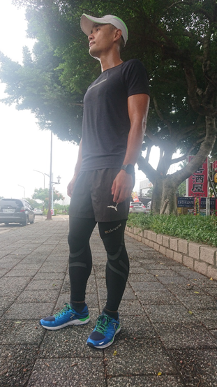 穿上BodyVine壓縮長褲進行第一次的體驗,內容就是自己平時晨跑的關渡河濱,大約11公里的路線。因為筆者的腿形比較肥胖,為求美觀,所以穿壓縮褲時都會習慣再套一件外搭短褲,不會直接穿,當然關於穿搭的部分還是見仁見智。筆者平時鮮少穿著壓縮長褲去晨跑河濱,大多是隨便套件短褲就出發,所以一開始對於雙腳被緊緊包覆的感覺是有些拘束,同時也怕穿著長褲會導致爆汗,讓雙腳全濕。不過11公里的過程跑下來,雙腿並沒有預期中的悶熱,小腿部分有著明顯的透氣感,感覺不錯。而雙膝跟阿基里斯腱於過程之中都有緊緊扣住的感覺,壓縮緊束的效果著實顯著。令人覺得最棒之處則在於「穩固」,11公里跑完之後,起跑時原先在身體上所固定的位置都沒有因做動作而「走鐘」,不需要在過程中做調整。